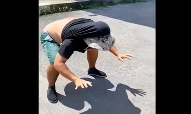 اس شخص نے دھوپ میں کھڑے ہو کر اور سر پر ٹوپی پہننے کے بعد اپنی شرٹ کو ٹوپی پر چڑھایا جس سے وہ سائے میں مینڈک کی طرح دکھائی دے رہا تھا اور پھر شخص نے مینڈک کی طرح چھلانگیں بھی لگائیں۔