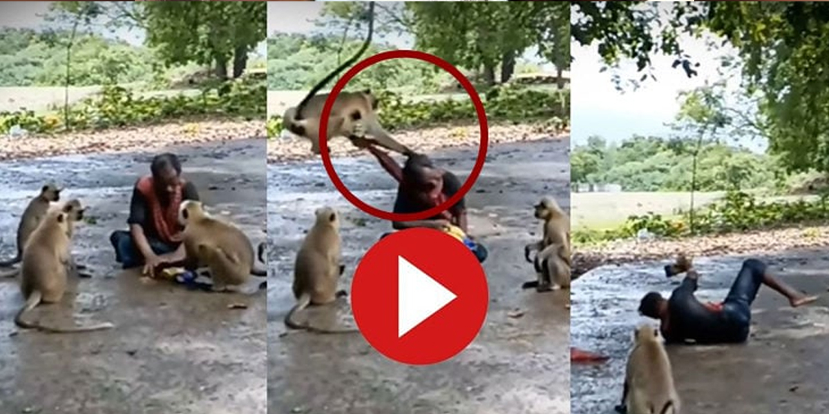 اس موقع پر ایک بندر اس آدمی سے چپس کا پیکٹ چھیننے کی کوشش کرتا ہے اور اسی دوران وہ مزاحمت پر اچھل کر اس آدمی کے سر پر حملہ کرتا ہے اور اس کے بال نوچ کر اسے زمین پر گرا دیتا ہے۔