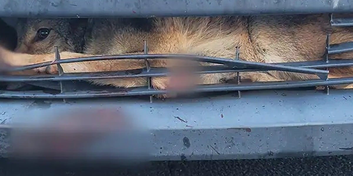کار کی گرل میں پھنسے بھیڑیا نما جانور کو کیسے بچایا گیا؟ تصاویر وائرل