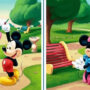 اس تصویر میں دو کارٹون کریکٹرز مکی ماؤس اور منی ماؤس موجود ہیں اور پس منظر میں نہایت خوبصورت سرسبز باغ ہے۔