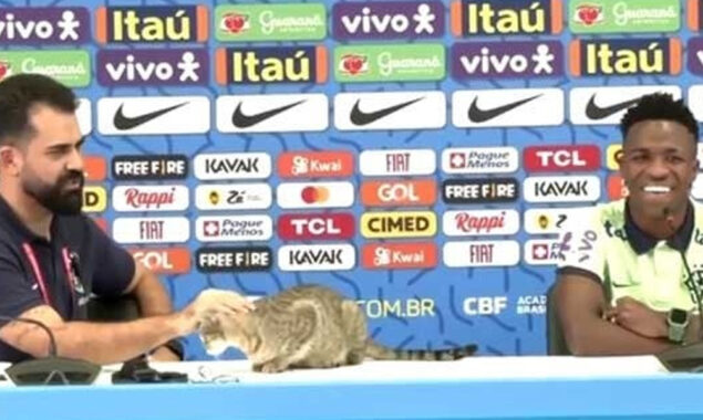 قطر کی آوارہ بلیاں اس وقت عالمی میڈیا کی توجہ کا مرکز بنی جب ایک آوارہ بلی دوحہ کے حماد اسٹیڈیم میں ہورہی برازیلین اسٹار وینیکس کی پریس کانفرنس کے دوران چھلانگ لگاکر ٹیبل پر آبیٹھی۔
