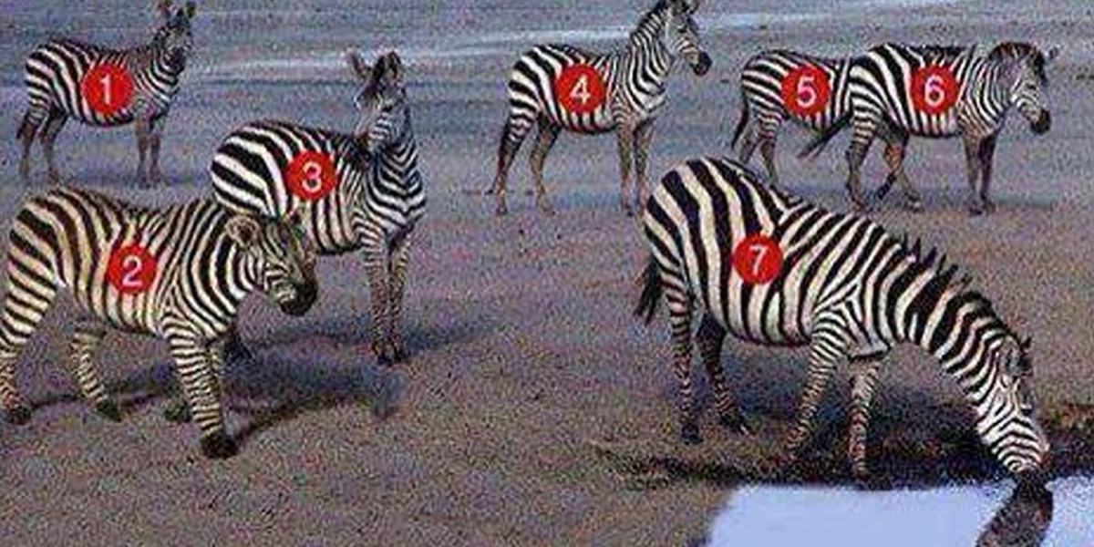 تصویر کو غور سے دیکھیں تو 2 نمبر والا جانور دراصل زیبرا نہیں ہے بلکہ وہ شیر کی طرح کا کوئی جانور ہے جس کے اوپر زیبرا جیسی دھاریاں موجود ہیں۔