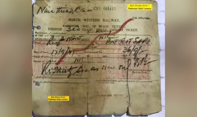 ٹکٹ کی تصویر شیئر کرتے ہوئے پاکستان ریل لورز نے لکھا کہ 17-09-1947 کو آزادی کے بعد جاری ہونے والے ٹرین ٹکٹ کی تصویر، 9 افراد کے لیے راولپنڈی سے امرتسر تک کے سفر کے لیے، جس کی قیمت 36 روپے اور 9 انا ہے۔