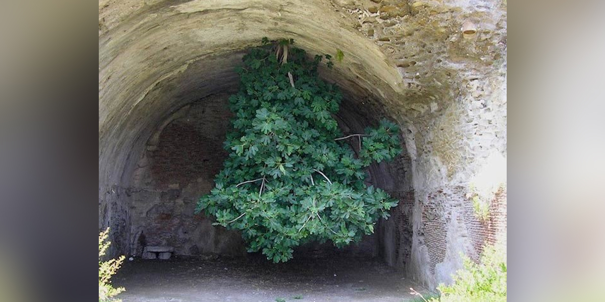 اٹلی میں واقع غار نما محراب میں انجیر کا الٹا درخت