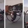 سوشل میڈیا پر ایک ویڈیو وائرل ہورہی ہے جس میں ایک شخص کو موڈیفائی بائیک پر دکھایا گیا ہے۔ ایک آرک کی شکل کا کالم موٹر سائیکل کے ساتھ اگلے پہیے سے پچھلے پہیے تک اس طرح منسلک ہوتا ہے کہ یہ سوار کو پوری طرح ڈھانپ لیتا ہے اور وہ کئی بار موٹر سائیکل کو پلٹتا ہوا آگے بڑھ جاتا ہے۔
