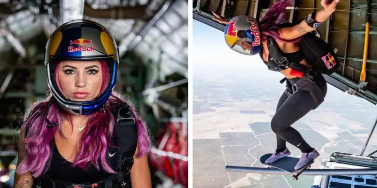 لیٹیسیا نے 9 ہزار 22 فٹ کی بلندی سے جہاز سے اسکیٹنگ کرتے ہوئے چھلانگ لگائی۔