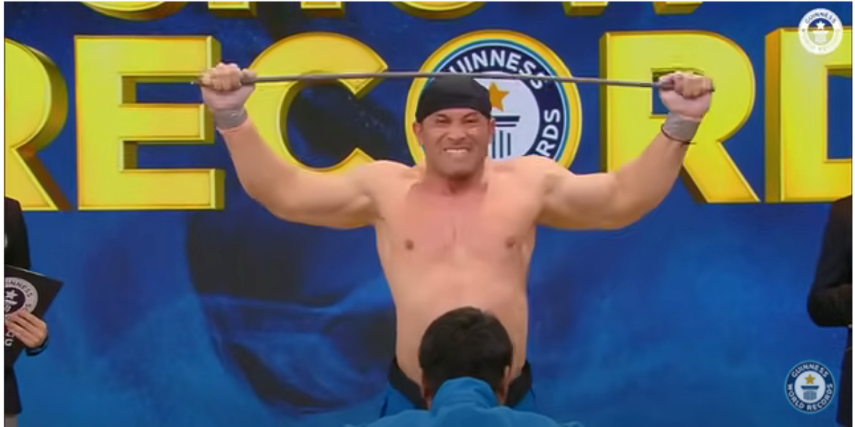 وسپی خرادی نامی یہ شخص لوہے کی سب سے زیادہ سلاخیں ایک منٹ میں سر کے ساتھ موڑنے کا عالمی ریکارڈ اپنے نام کر نے میں کامیاب ہو گیا۔