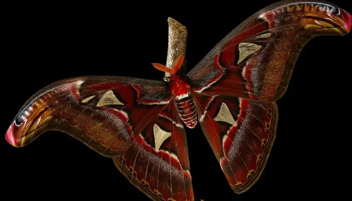 یہ تصویر دنیا کی سب سے بڑی پتنگوں میں سے ایک اٹاکس اٹلس کی غیر معمولی نقل کو دکھاتی ہے۔