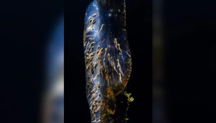 ان کی تصویر مڈغاسکر میں فیلڈ ورک کے دوران لی گئی جس میں ’’گیبا مینٹس لیبر‘‘ نسل کے مینڈک کے بچے جِیلی جیسے مادّے میں تیرتے دکھائی دیتے ہیں جو درخت کے تنے سے لٹک رہا ہوتا ہے۔