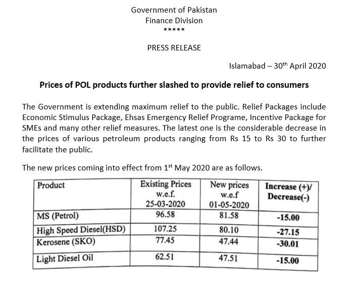حکومت نے پیٹرولیم مصنوعات کی قیمتوں میں کمی کا اعلان کردیا ہے۔