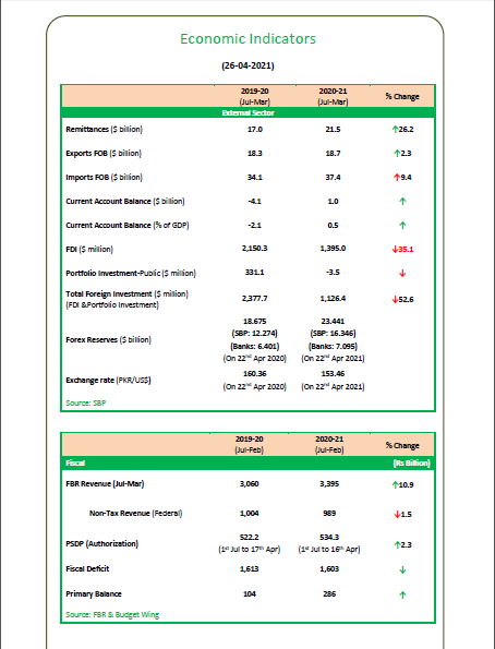 رپورٹ میں بتایا گیا ہے کہ جولائی تا مارچ ترسیلات زر 26 فیصد اضافے سے 21.5 ارب ڈالر کا ہوگیا ہے جبکہ کرنٹ اکاؤنٹ  سرپلس ریکارڈ کیا گیا ہے۔