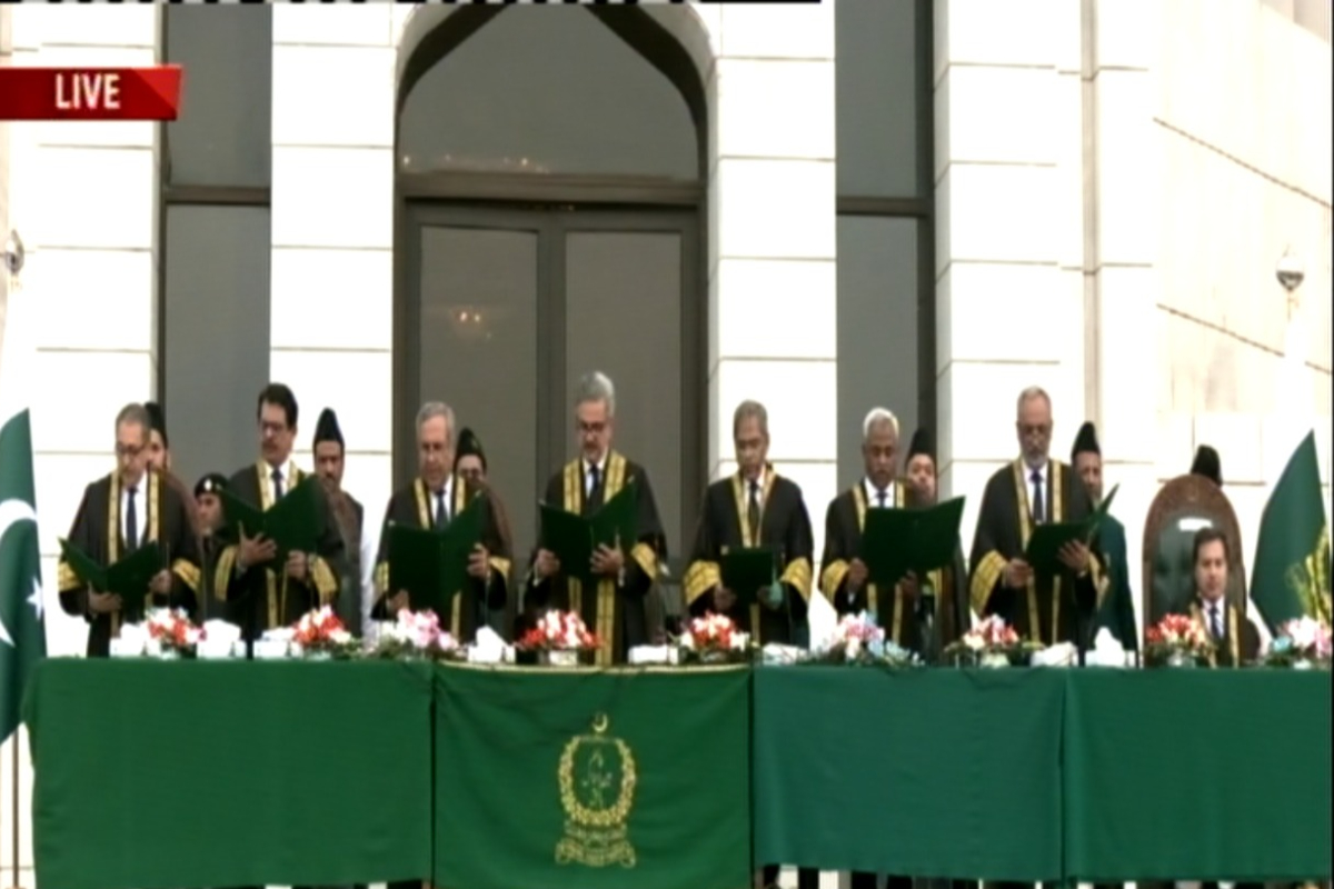 نئے 7 ججز کی تقریب حلف برداری سپریم کورٹ میں پہلی بار عدالتی احاطے کے لان میں منعقد ہوئی، جس میں چیف جسٹس پاکستان یحییٰ آفریدی نے تمام سات ججز سے حلف لیا۔