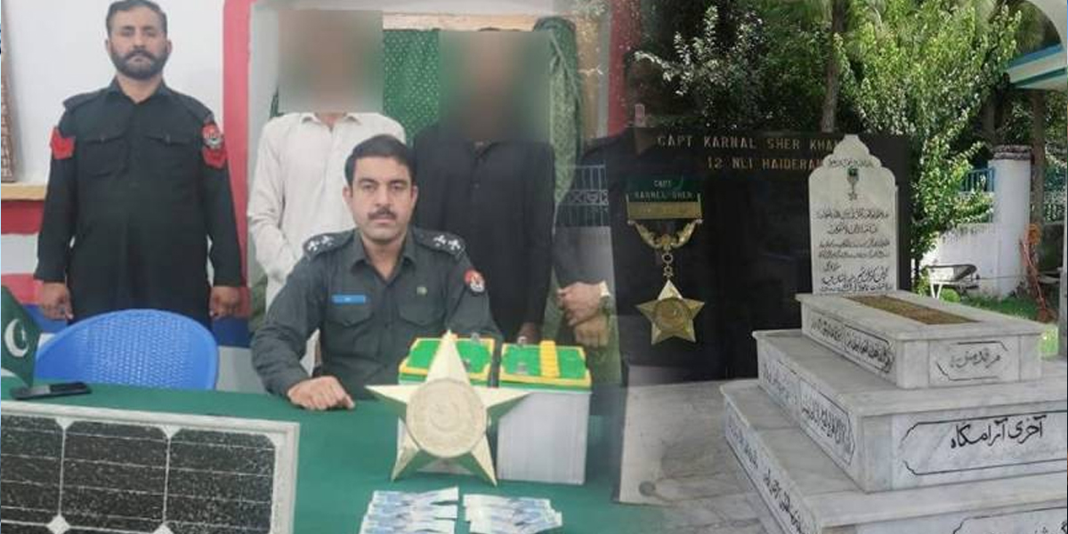 خیبرپختونخوا پولیس نے کارگل جنگ کے ہیرو کیپٹن کرنل شیر خان کے مقبرے سے نشان حیدر کی کاپی اور دیگر اشیاء چوری کرنے والے دو مجرموں کو حراست میں لے لیا ہے۔