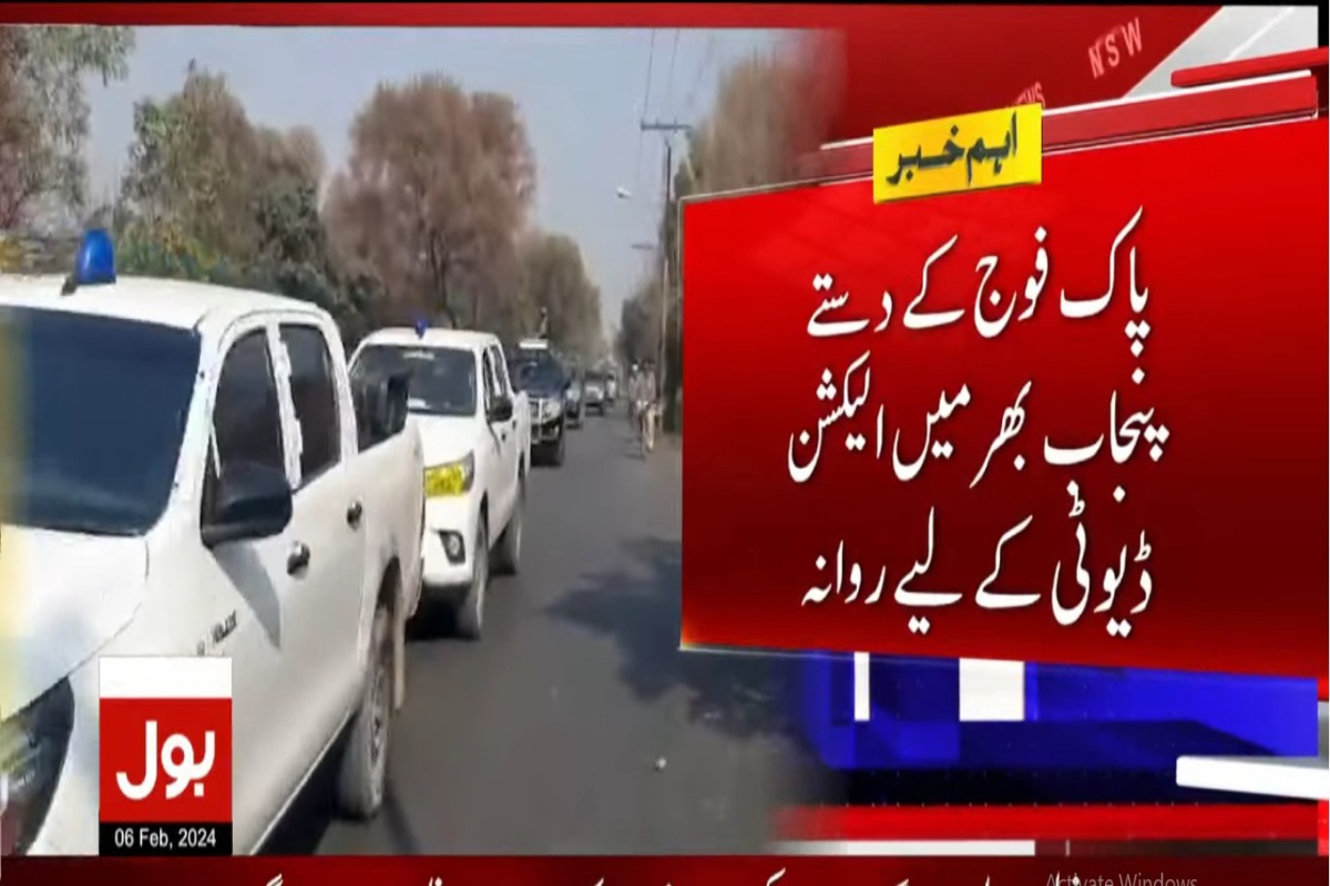 عام انتخابات کے پرامن انعقاد کے لیے پاک فوج کے چاق و چوبند دستے لاہور، ملتان، اوکاڑہ، بہالپور اور گوجرانوالہ گیریژن سے پنجاب کے دیگر اضلاع میں الیکشن سیکیورٹی ڈیوٹی کے لیے روانہ ہوگئے۔