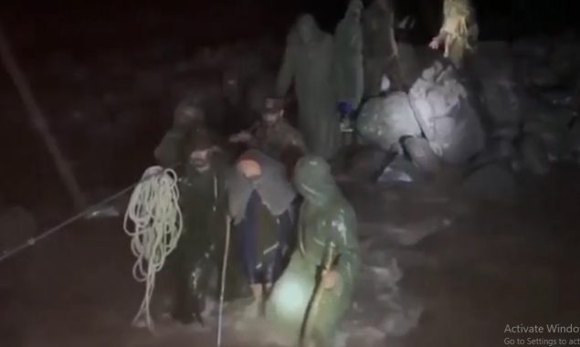 آزاد کشمیر ضلع فارورڈ کہوٹا میں شدید بارشوں اور طغیانی کی وجہ سے بیتار نلے میں پھنسے ہوئے 25 افراد بشمول 8 بچوں اور 8 خواتین کو رات کے اندھیرے اور سخت موسمی حالات میں نکالنے کے لیے پاک فوج نے ریسکیو آپریشن کیا۔