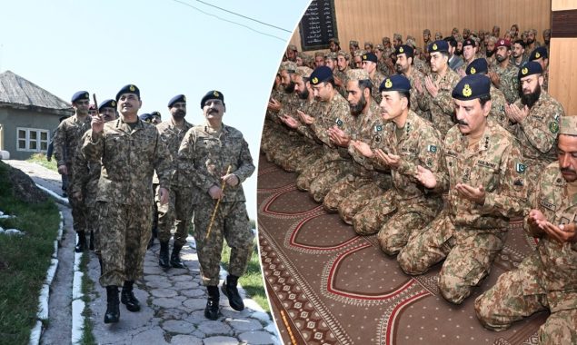 آئی ایس پی آر نے بتایا کہ آرمی چیف نے اگلے مورچوں پر افسروں اور جوانوں کے ساتھ عید کی نماز بھی پڑھی۔
