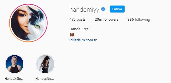سوشل میڈیا سائٹ انسٹاگرام پر موجود تُرک اداکارہ ہینڈی ارسل کے تصدیق شدہ اکاؤنٹ پر فالوورز کی تعداد میں اضافہ ہوگیا ہے۔