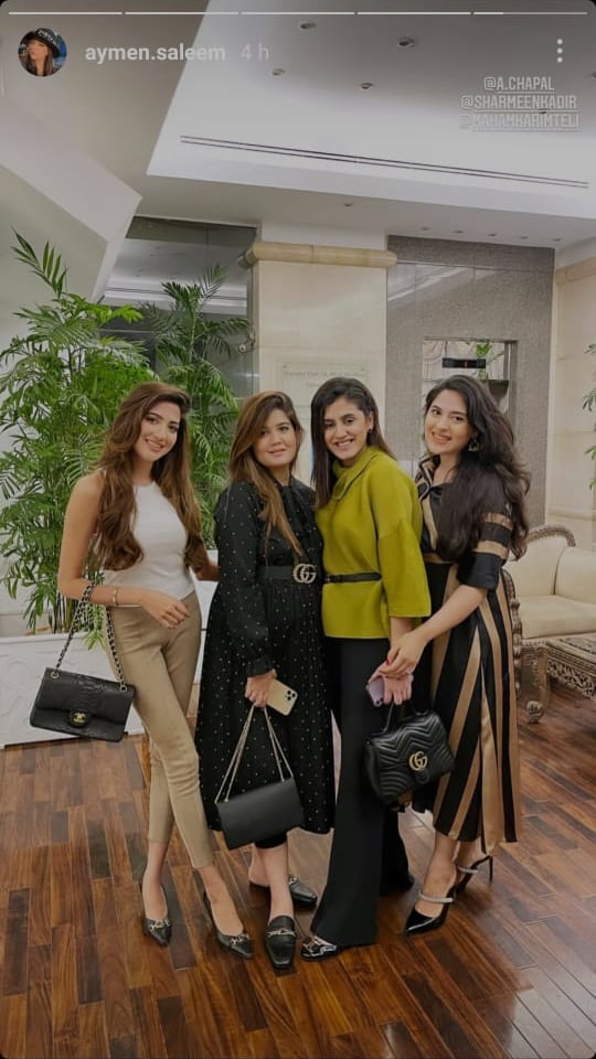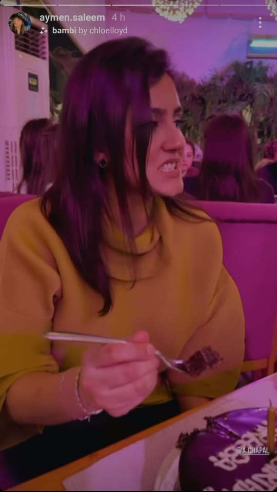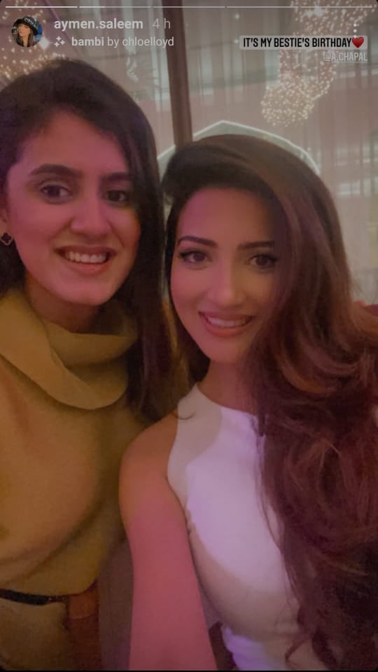 یہ ہیں ایمن سلیم کی بیسٹ فرینڈ جن کا نام اریبہ ہے اور اداکارہ اپنی دیگر سہیلیوں کے ہمراہ ان کا برتھ ڈے منانے کے لئے ایک ہوٹل میں موجود ہیں۔