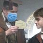 اس تصویر میں دیکھا جا سکتا ہے کہ عالمی شہرت یافتہ جادوئی فلم ہیری پوٹر کے پروفیسر سلوگرون فلم کے ہیرو ہیری پوٹر کو ماسک دے رہے ہیں۔