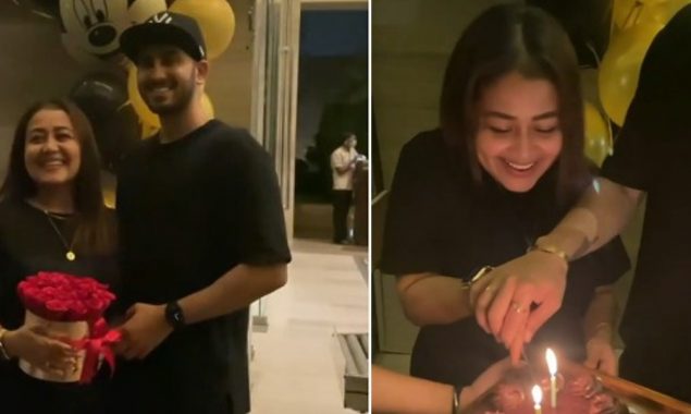 اس ویڈیو میں نیہا اپنے شوہر کے ہمراہ خوش دکھائی دے رہی ہیں جبکہ دونوں گلوکار ساتھ میں کیک کاٹ رہے ہیں۔