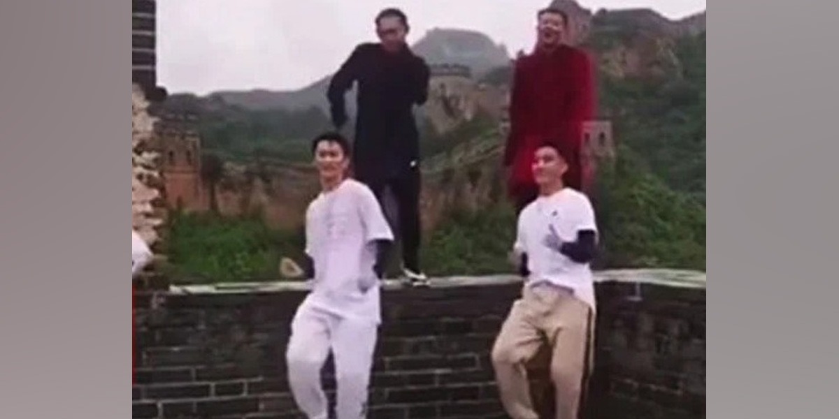 فوٹیج میں دیکھا گیا کہ اداکار دیوارِ چین کے ایک حصے پر کھڑے چار لوگوں کے ساتھ رقص کر رہے ہیں۔