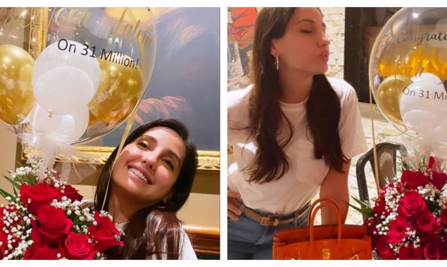 مذکورہ ویڈیو میں دیکھا جاسکتا ہے کہ نورا نے انسٹاگرام پر اپنے 31 ملین فالورز مکمل ہونے کی خوشی کو بھرپور انداز میں ایک کیک کاٹتے ہوئے منایا ہے۔