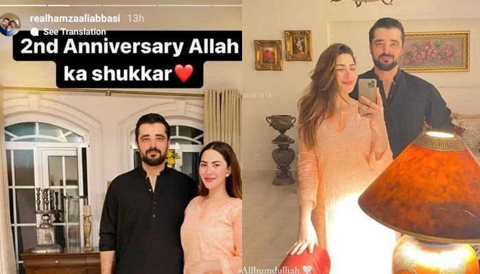 دوسری جانب حمزہ علی عباسی نے نیمل خاور کے ہمراہ تصویر انسٹاگرام اسٹوری پر شیئر کرتے ہوئے لکھا کہ شادی کی دوسری سالگرہ اللہ کا شُکر۔