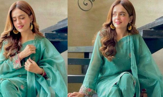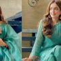 اداکارہ کی جانب سے پوسٹ کی گئی تصاویر میں دیکھا جاسکتا ہے کہ وہ سی گرین رنگ کا لباس پہنی ہوئی ہیں جو ان کی خوبصورتی میں مزید اضافہ کر رہا ہے۔