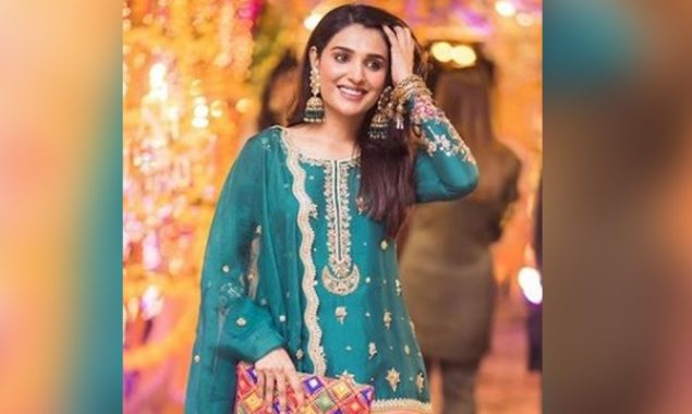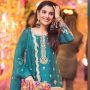 شئیر کی گئی تصاویر میں اداکارہ نے سی گرین رنگ کی شرٹ اور پیلے رنگ کا غرارہ زیب تن کیا ہوا ہے۔