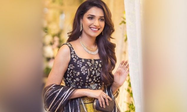 تصاویر میں اداکارہ کو سی گرین رنگ کی شرٹ اور پیلے رنگ کا غرارہ زیب تن کیے ہوئے دیکھا گیا تھا۔