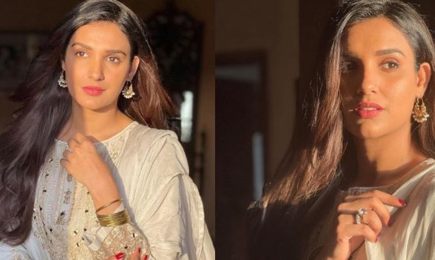 شئیر کی گئی تصاویر میں اداکارہ سفید رنگ کا لباس زیب تن کی ہوئی ہیں۔