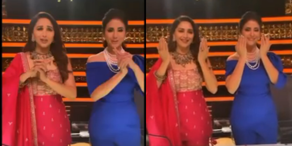 مادھوری اور ارمیلا کی یہ ویڈیو ٹی وی شو ڈانس دیوانے سیزن 3 کے سیٹ کی ہے جہاں وہ ارمیلا کے ساتھ موجود ہیں۔