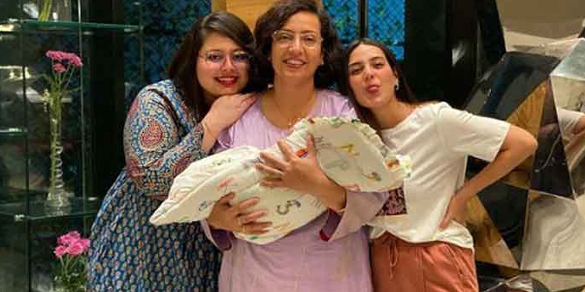 شیئر کی گئی تصویر میں دیکھا جا سکتا ہے کہ اُن کی والدہ اپنے نواسے کو اٹھائے ہوئے ہیں جبکہ اس دوران اقراء عزیز کیمرے کی طرف دیکھتے ہوئے منہ چڑا رہی ہیں، اس تصویر میں کبیر حسین کا چہرہ نظر نہیں آ رہا۔