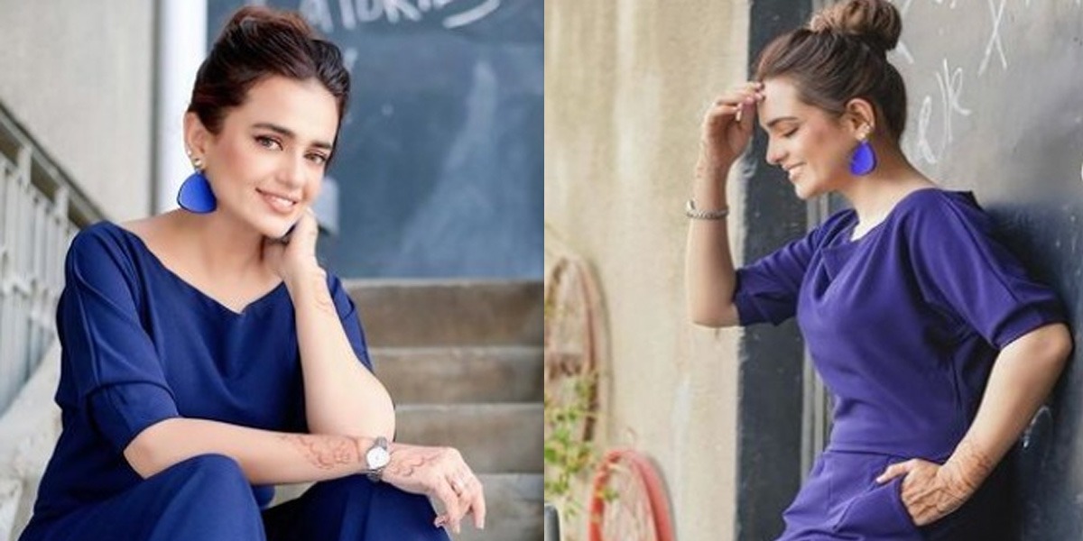 شئیر کی گئی تصاویر میں دیکھا جا سکتا ہے کہ اداکارہ نے جامنی رنگ کا مغربی لباس زیب تن کیا ہوا ہے ۔
