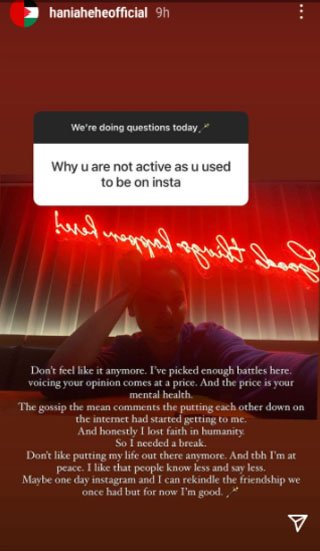 ہانیہ نے لکھا کہ انہیں اچھا لگتا ہے کہ لوگ ان کے بارے میں کم جانیں اور کم بات کریں۔