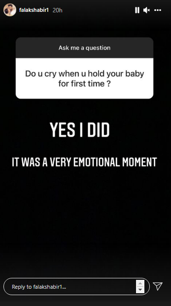 اسی دوران ایک مداح کی جانب سے پوچھے گئے سوال پر فلک نے تسلیم کیا بیٹی عالیانہ کی پیدائش کے بعد جب انہوں نے پہلی بار انہیں ہاتھوں میں اٹھایا تو وہ جذبات میں آکر آبدیدہ ہوگئے۔