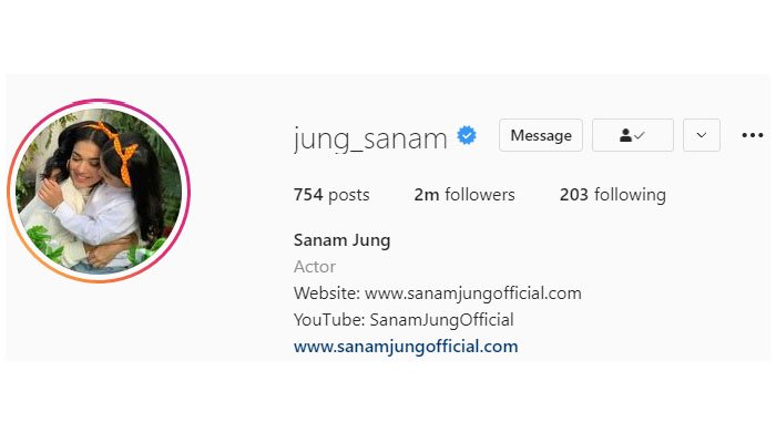 اس سے قبل صنم جنگ کی جانب سے ایک پوسٹ جاری کی گئی تھی جس میں سوشل میڈیا سائٹ انسٹاگرام پر ان کے فالوورز کی تعداد 2 ملین ہوگئی تھی۔