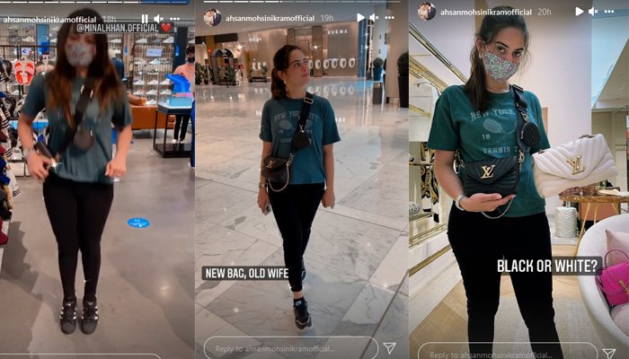 منال خان اور احسن محسن کی انسٹا اسٹوریز سے پتا چلتا ہے کہ منال خان دبئی میں شاپنگ میں مصروف ہیں۔
