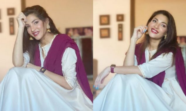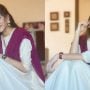 شئیر کی گئی تصاویر میں اداکارہ نے سفید فراک زیب تن کیا ہوا ہے جبکہ دوپٹے کا کلر جامنی ہے ۔