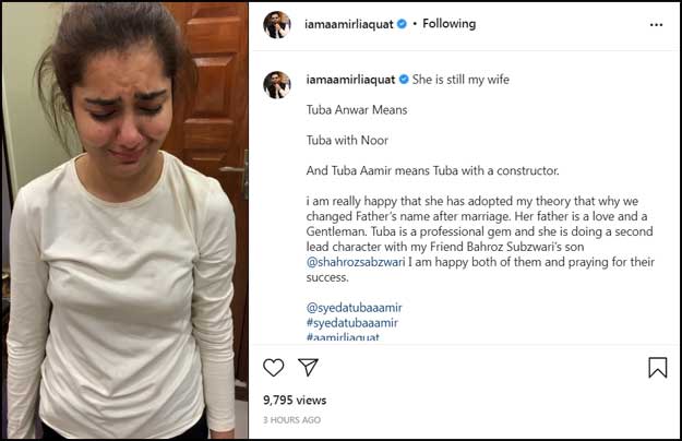 عامر لیاقت نے اس ویڈیو کے ساتھ اپنی اور سیدہ طوبیٰ کے درمیان طلاق کی خبروں کی تردید کرتے ہوئے کہا کہ یہ اب بھی میری بیوی ہے۔
