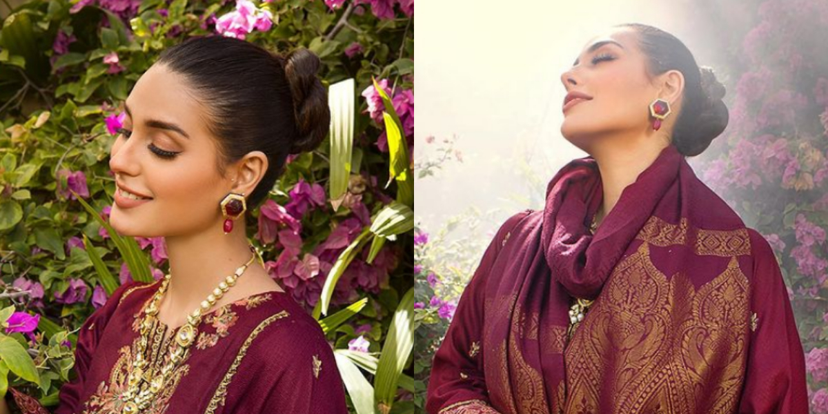 شئیر کی گئی تصاویر میں دیکھا جاسکتا ہے کہ اداکارہ نے مہرون رنگ کا لباس پہنا ہوا ہے جس میں اقراء بے حد خوبصورت لگ رہی ہیں۔