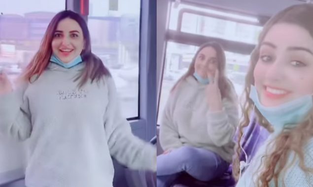 شئیر کی گئی ویڈیو میں حریم شاہ اور صندل کو ٹرین میں ڈانس کرتے ہوئے دیکھا جاسکتا ہے۔