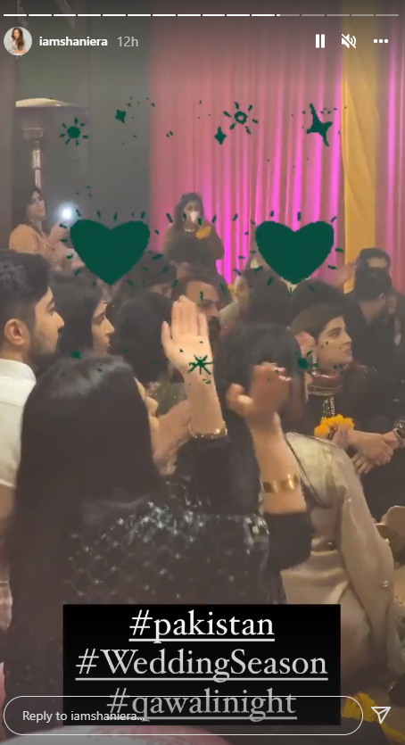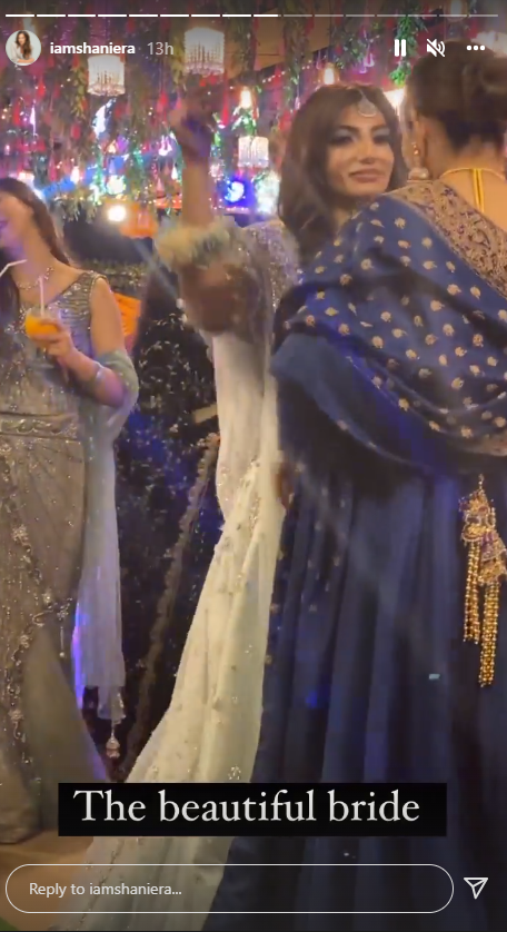 شنیرا اکرم نے اپنی انسٹا اسٹوریز پر اس تقریب کی چند ویڈیوز اور تصاویر شیئر کی ہیں۔