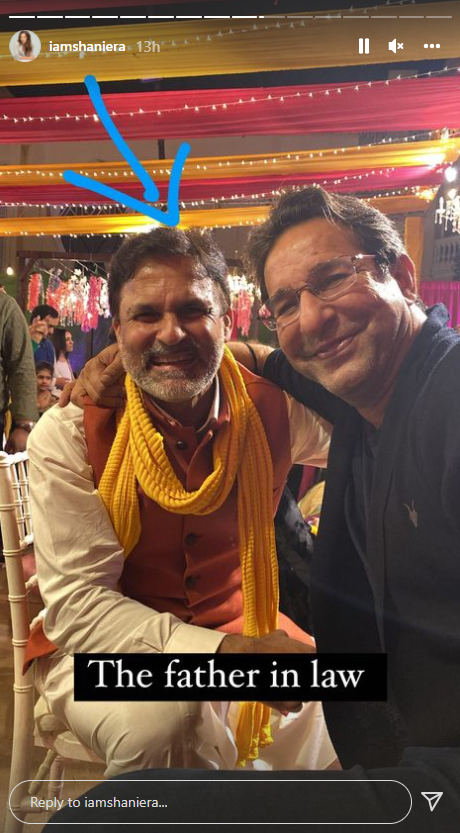 ایک انسٹا اسٹوری میں انہوں نے وسیم اکرم کی معین خان کے ساتھ ایک تصویر بھی شیئر کرتے ہوئے لکھا کہ یہ سسر ہیں۔