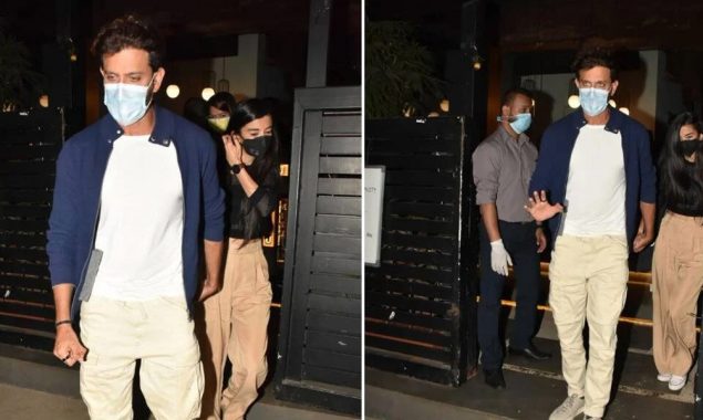 گزشتہ روز ہریتھک روشن کو ممبئی کے ریسٹورنٹ کے باہر دیکھا گیا جہاں وہ ایک ماسک پہنی لڑکی کا ہاتھ پکڑے نکل رہے تھے۔