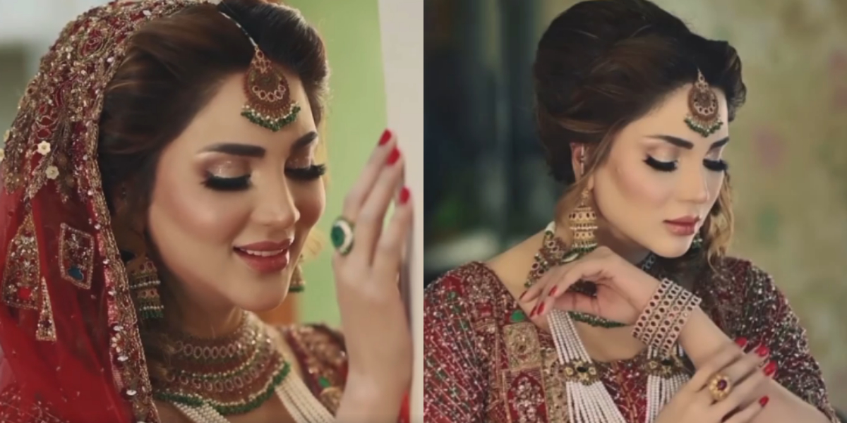 ویڈیو میں دیکھا جاسکتا ہے کہ اداکارہ لال رنگ کا عروسی لباس زیب تن کی ہوئی ہیں۔