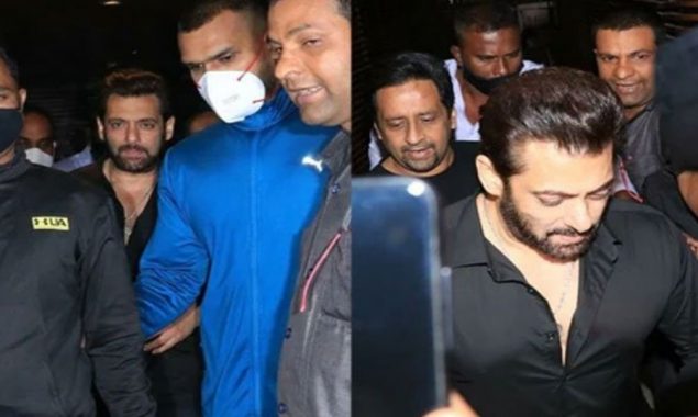 سلمان خان کی سیکیورٹی نے اداکار کو مداحوں کے بیچ سے نکال گاڑی تک پہنچایا۔