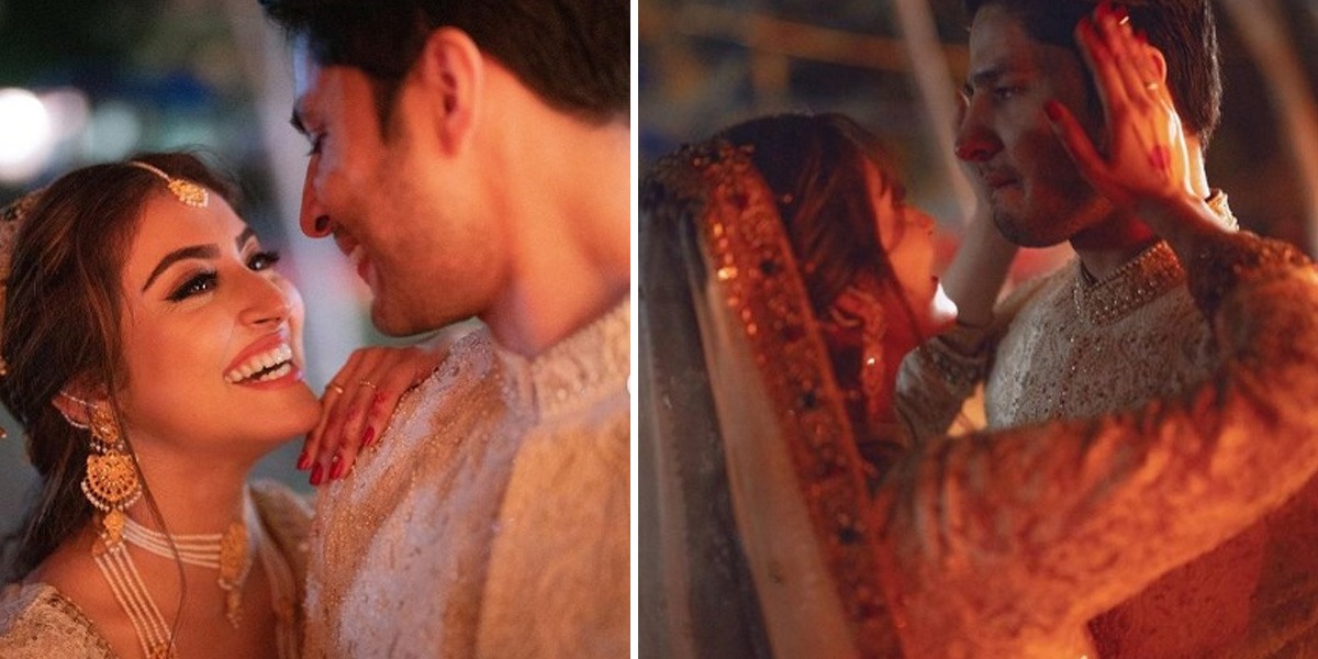 ان تصاویر میں اداکارہ حبا بخاری اور اداکار آریز احمد کو نکاح کے بعد ایک ساتھ دیکھا جاسکتا ہے۔