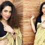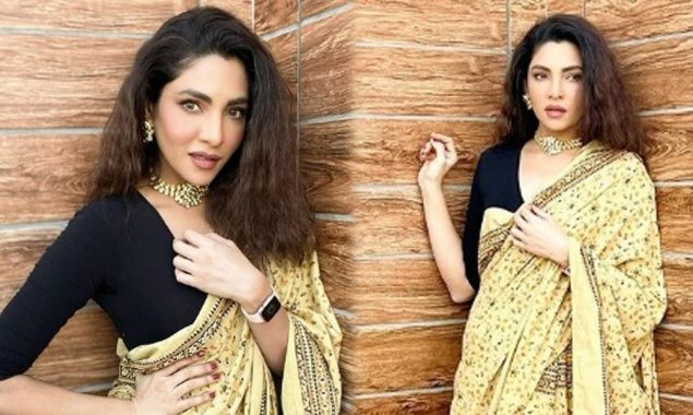 شئیر کی گئی تصاویر میں دیکھا جاسکتا ہے کہ اداکارہ کالی اور اسکن رنگ کی ساڑھی زیب تن کی ہوئی ہیں۔