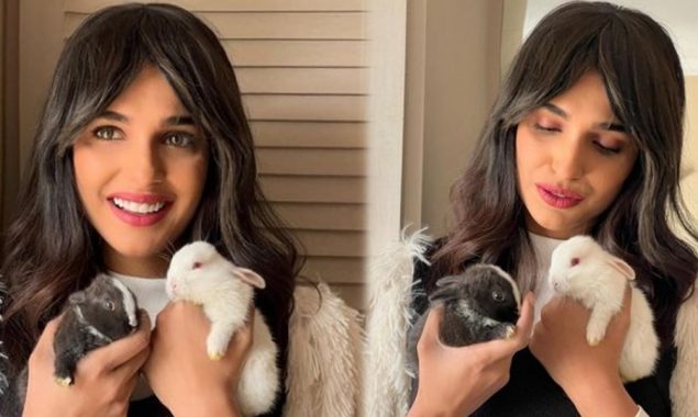 ان تصاویر میں اداکارہ اپنی کپڑوں کی میچنگ کے دو خرگوش پکڑی ہوئی ہیں۔